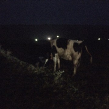 Speaking of treats, this morning we were greeted with a fresh heifer before daylight. Through the shadows you can almost see her licking off her newborn calf.