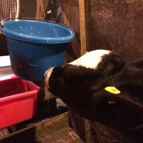 All calves, and I do mean all of them, are raised exactly the same on our farm. We don’t do anything differently just because a calf is not a heifer. Now, if I believed everything I read on the internet I would “know” that dairy farmers “always” either kill their bull calves at birth because they’re not heifers or sell them for veal and veal is bad. Actually I never even knew the facts of veal production until I read this insightful post on veal farmers by the Farmer’s Wifee. But neither of these options are what happens on our farm.